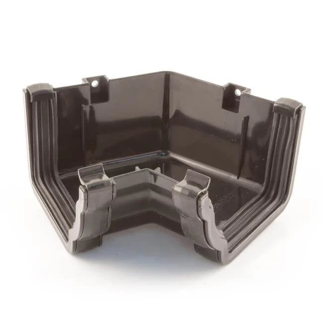 Black uPVC high capacity guttering. Nominal size of gutter 117 mm wide 75 mm deep. For downpipe use 65 mm square pipe and fittings.