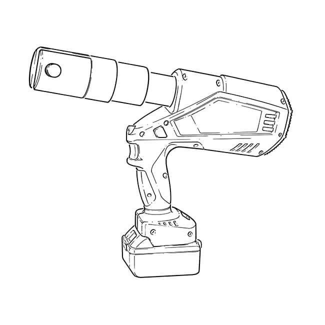 Alpha Press ED-1550 18 V for use on 15 to 54 mm metallic pipe. Features 32 kN force output and 350° swivel barrel.