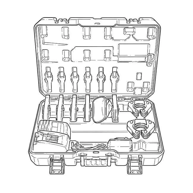 Includes PZ-3240 press tool, 15, 22, 28, and 35 M profile jaws and 42 and 54 mm M profile jaw collars, intermediate jaw adaptor, 230 V/240 V battery charger, 2 x 18 V 4.0 Ah Li-ion batteries and a hard carry case.