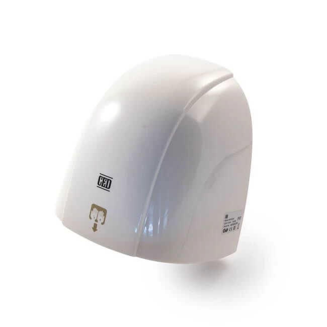 Polycarbonate automatic hand dryer with infra-red motion sensing and 1.8 kW heater element.