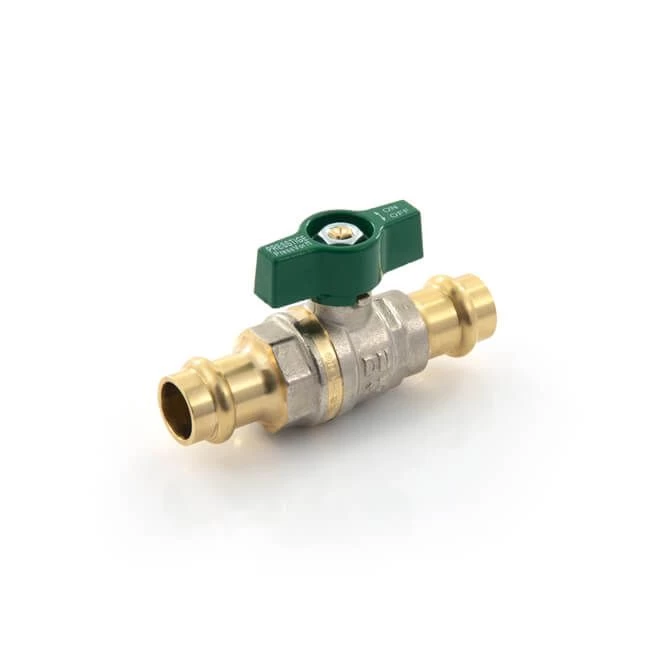 Full bore brass body ball valve designed for use on hot and cold water services, vented and unvented closed circuit heating applications. Connections have a Leak Before Press feature to indicate if joint has not been pressed. Press tongs with either M or V profile can be used.