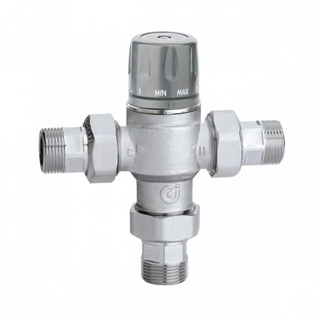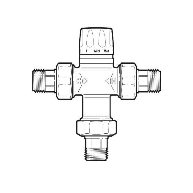 Tempering Valve is a safety device designed to protect against scalding at outlets primarily used for personal hygiene. It is designed to control temperature in water mixing applications and safely reduce temperature to between 55 and 60°C. Can be used in systems where the water in the storage cylinder can reach temperatures significantly above 60°C, for example if heated by solar heating. Can be used with multiple outlets and frequently as part of a re-circulating domestic hot water system. Supplied with check valves and strainers.