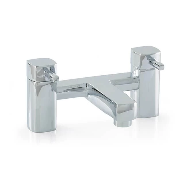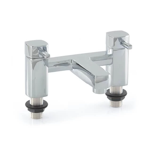 Bath tap deck filler with chrome plated brass body, square filler head and 1/4 turn lever handles.