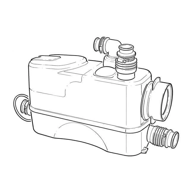 A fully automatic lifting station for pumping waste from a toilet, basin, shower, bath or bidet. Toilet connection is on the right hand side and there is 1 top and 2 side inlet connections (for both high and low level drain utilities).