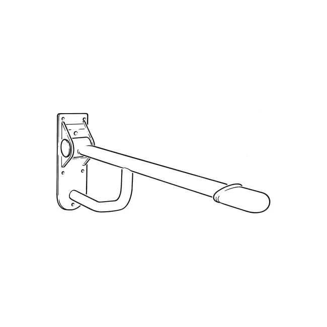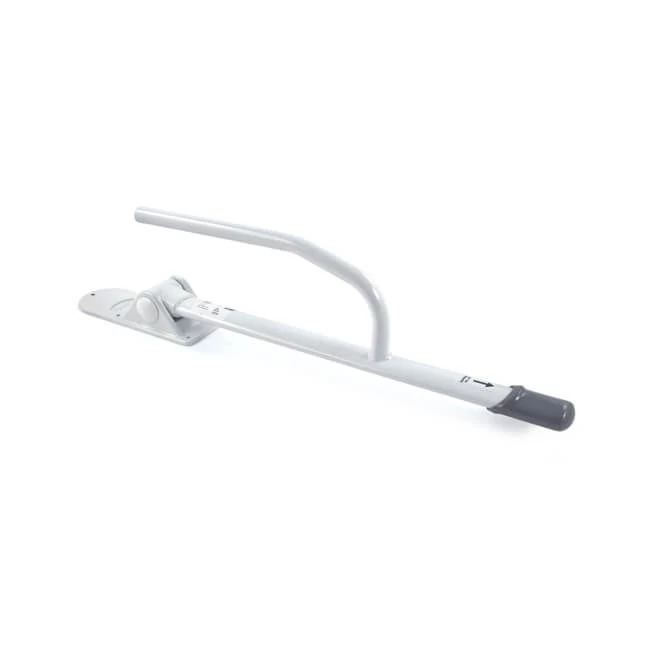 Dropdown rails park in the upright position with positive location. Manufactured from oval section white epoxy powder coated steel tube with soft feel grey end caps. Aluminium alloy wall mounting bracket with 5 fixing holes.