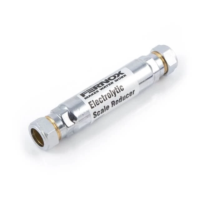 In-line electrolytic scale reducer to prevent the build-up of scale and provide whole house protection.