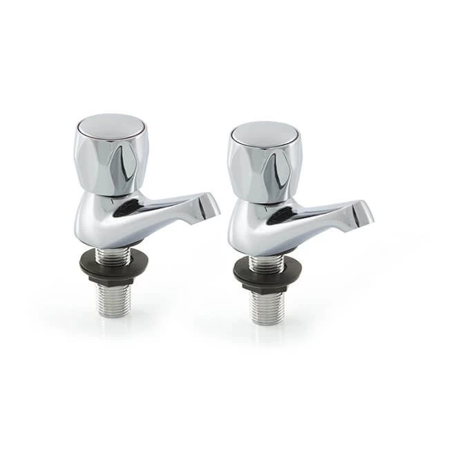 Contract bath tap with chrome plated brass body and full turn metal head. Per Pair.