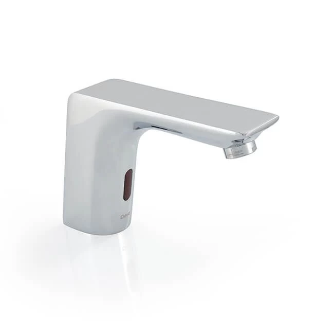 Infrared brass body chrome plated basin tap with built in sensor, remote control box with solenoid valve, 6 V DC (4 AA alkaline batteries, not supplied) battery holder and 230 V AC transformer power supply options.