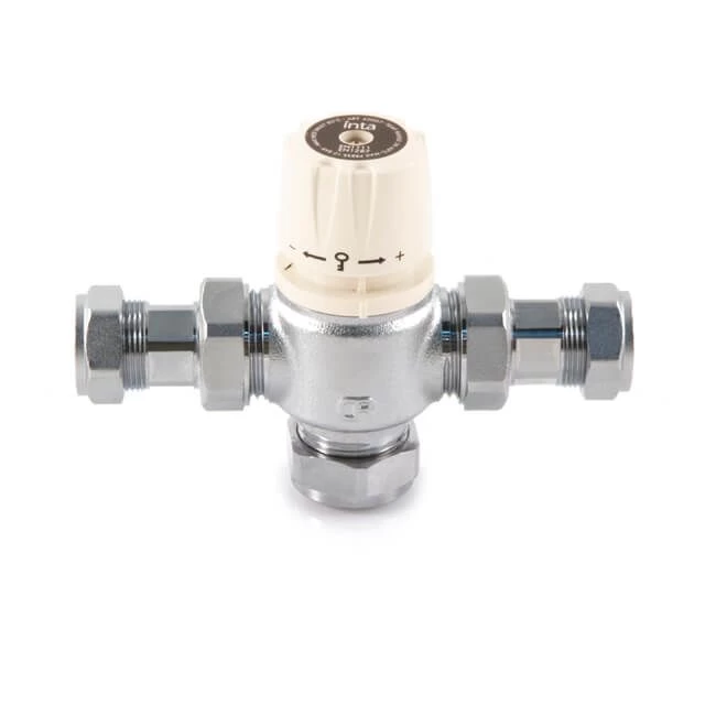 Inta under bath ‘Intamix’ thermostatic mixing valve is designed primarily for bath applications, but can deliver blended hot water to taps, showers, bidets and other water outlets. TMV 2 and WRAS approved product.