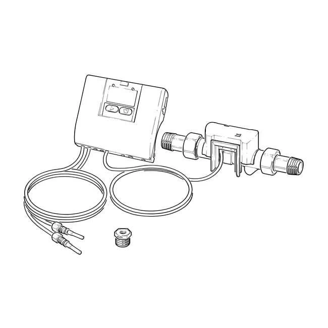 Multical® 403 is a compact ultrasonic energy meter that consists of calculator, flow sensor with BSP threaded unions, washers and nuts, 1.5 m signal cable and two 1.5 m return temperature sensors, for water-based heating systems with temperatures from 2 to 130°C. Powered by a D-cell lithium battery (up to 14 years life), the calculator’s two front keys adjust date and time or reset operating hour/info-event counters and can be used to display log data, including yearly or monthly logger. Can be fitted with optional communication modules for Wireless M-Bus + 2 pulse inputs, M-Bus + 2 pulse inputs and Data pulse + 2 pulse outputs.