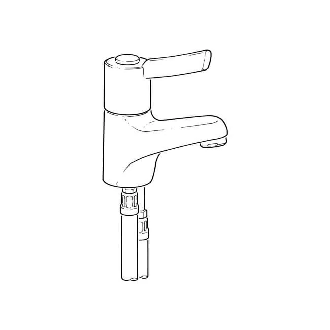 Single lever sequential control mixing tap. Cold to hot 1/2 a turn lever. The maximum temperature may be adjusted by setting a stop. Suitable for public facilities, rest homes and hospitals. Includes flexible connecting hoses with isolation valves. WRAS approved.