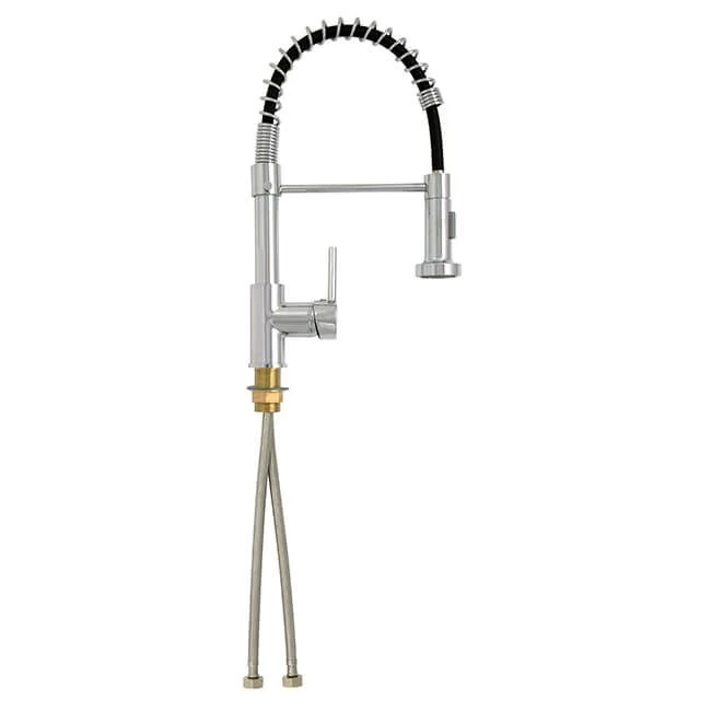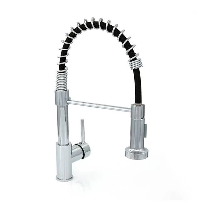 Chrome plated, brass body tap with 35 mm ceramic cartridge, lever handle and push button, pull out spray.