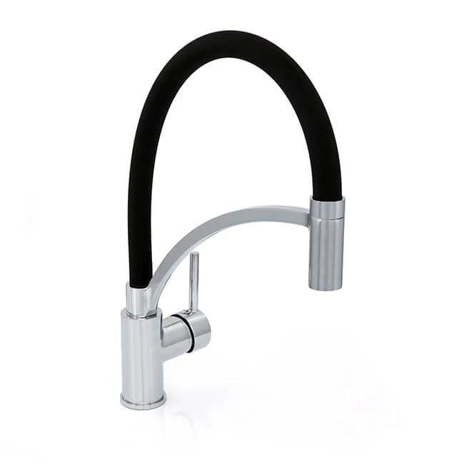 Chrome plated, brass body tap with 35 mm ceramic cartridge, lever handle and push button, pull out spray.