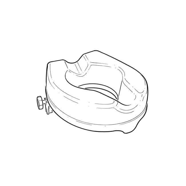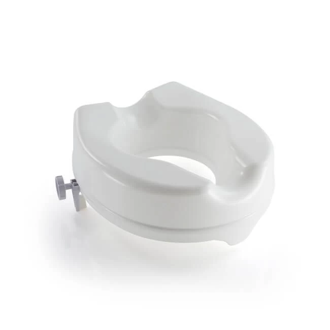 Raised toilet seat constructed from polypropylene with a retaining front lip and two nylon hand wheel adjustable support brackets.