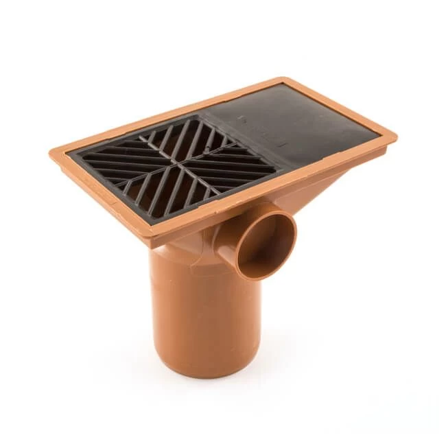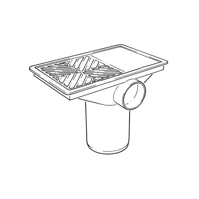 150 mm x 250 mm rectangular grid (black polypropylene), 110 mm dia. spigot (140 mm long)