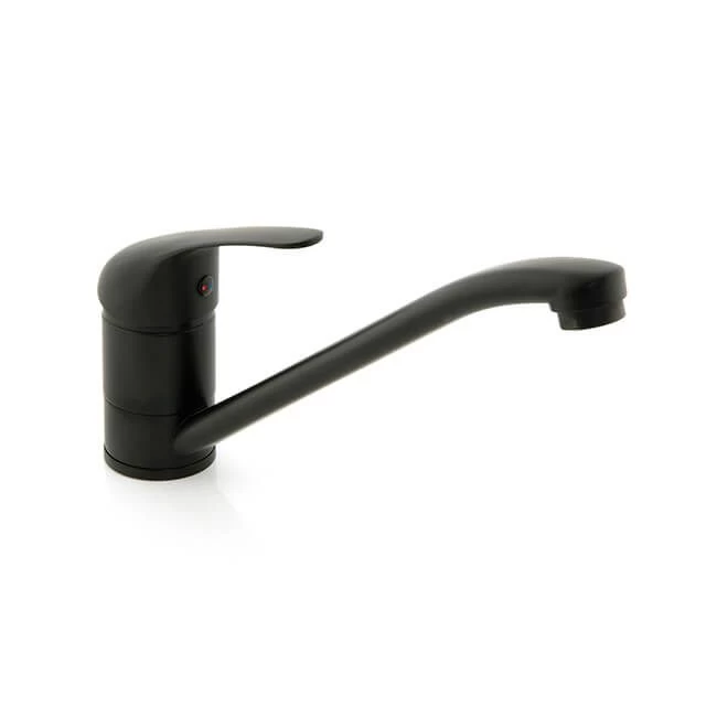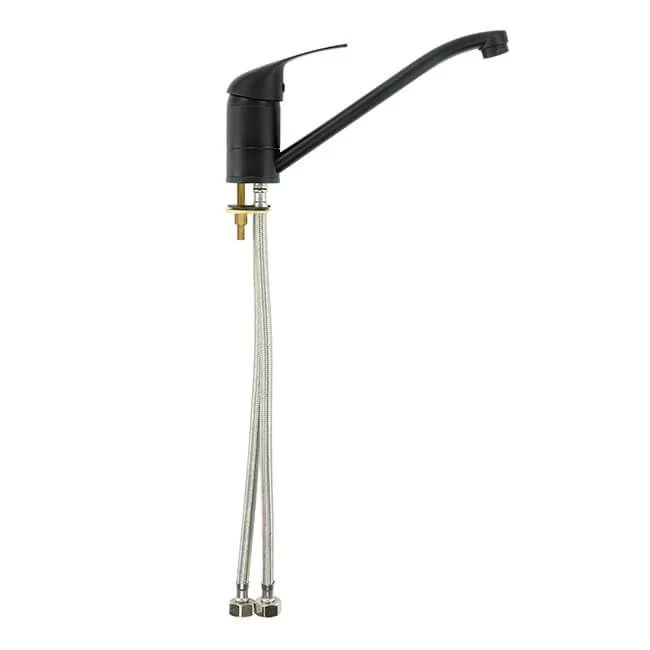 Matt black, brass body kitchen sink mixer tap with 40 mm ceramic cartridge and lever handle. Supplied with flexible tap connectors.
