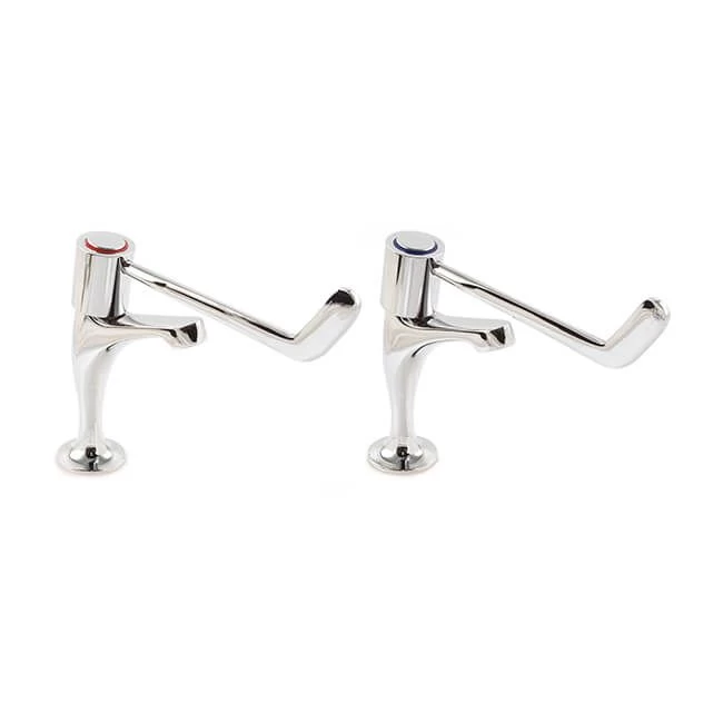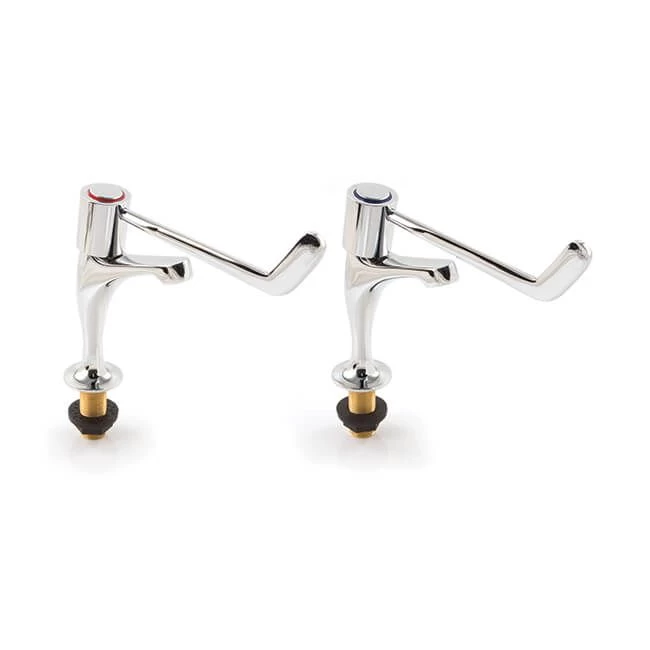 Taps with 6″ levers. Feature quarter turn rapid on/off flow. Ceramic disc. 1/2″ inlet threads. Chrome plated.