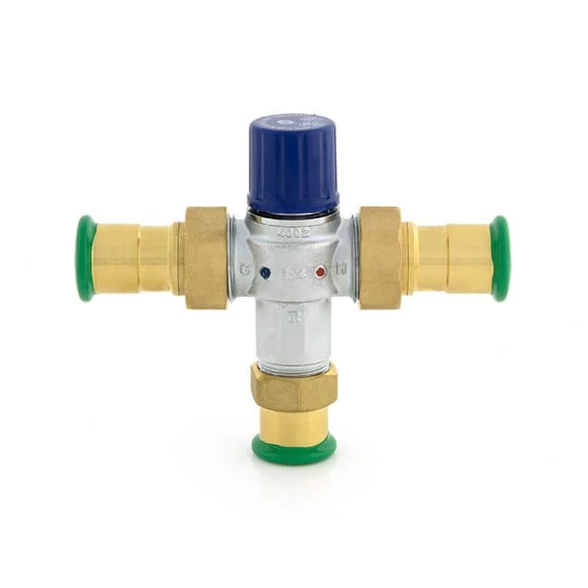 Thermostatic DZR brass, chrome plated mixing valves designed to meet N.H.S. requirement DO8 and TMV 2, TMV 3 schemes. To be fitted using a press-fit tool using ‘M’ press profile jaws.