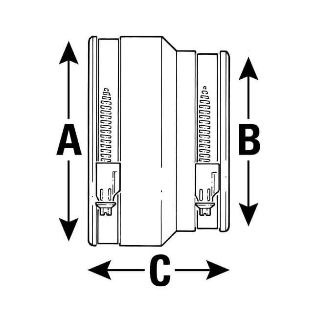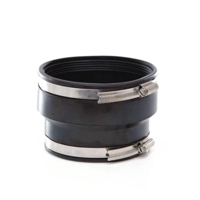 Rubber coupling to join two lengths of non-pressure pipe, above or below ground. Suitable for repair work. Adaptors and coupling are manufactured from Elastomers conforming to the performance requirements of BS EN681-1:1996 and/or BS 2494 D.